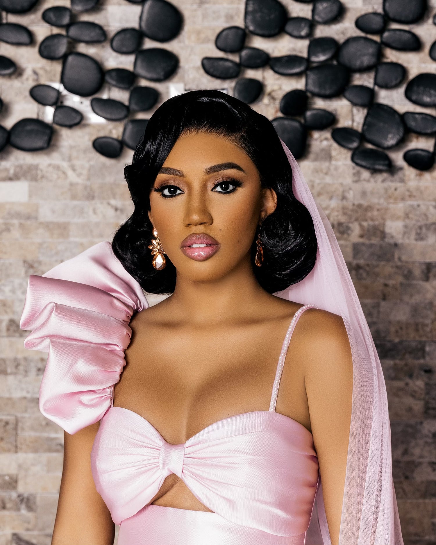 Our enchanting jewels bride has evolved into a captivating modern bride. Adorned with our exquisite Rose gold Vivica earrings, she radiates elegance alongside her blushing pink wedding gown. Now is the moment to step boldly into the future of style, leaving behind the shadows of tradition.