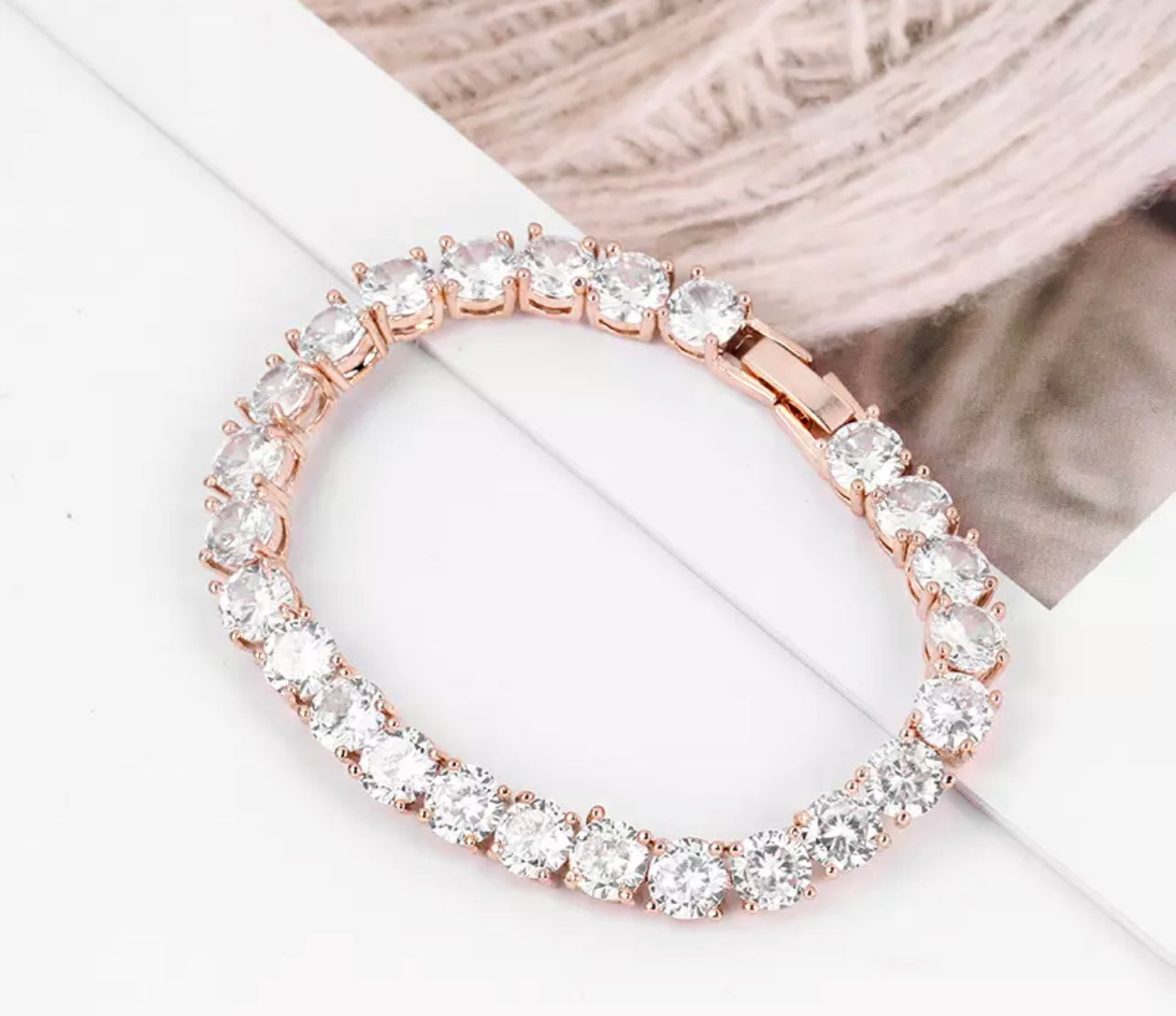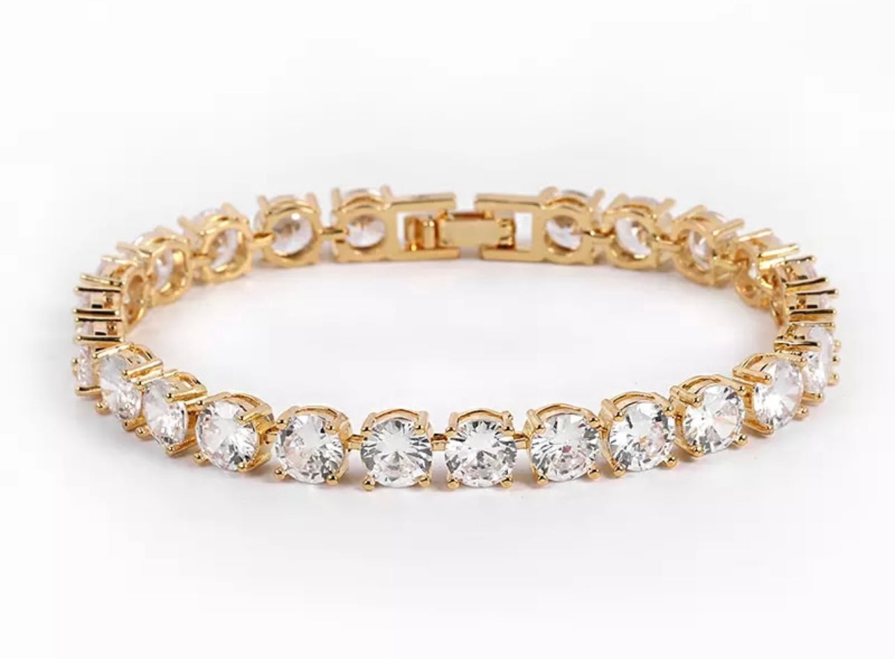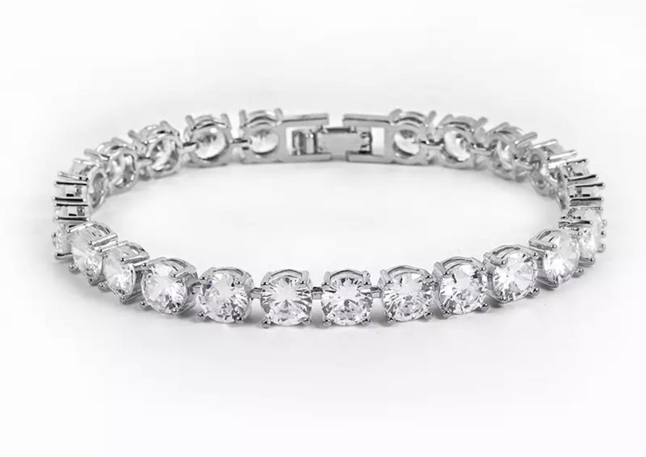 Description: Our diamond crystal tennis bracelet is made up of crystal clear stones.