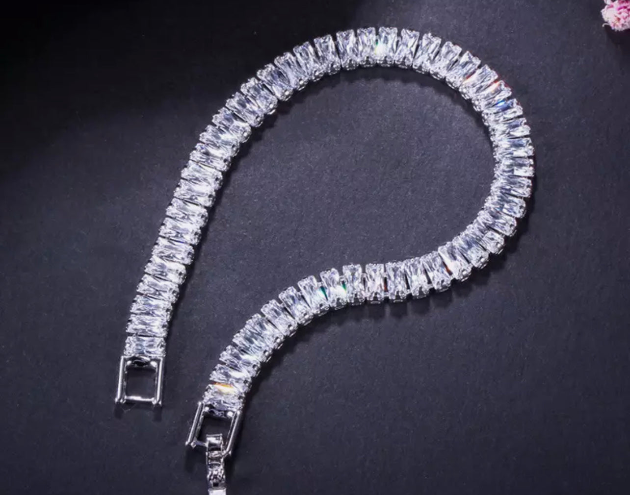 Add some serious sparkle to your wrist with this stunning bracelet. This stunningTennis bracelet is a classic style can be worn on its own or with our Brooke earrings for a luxury feel.