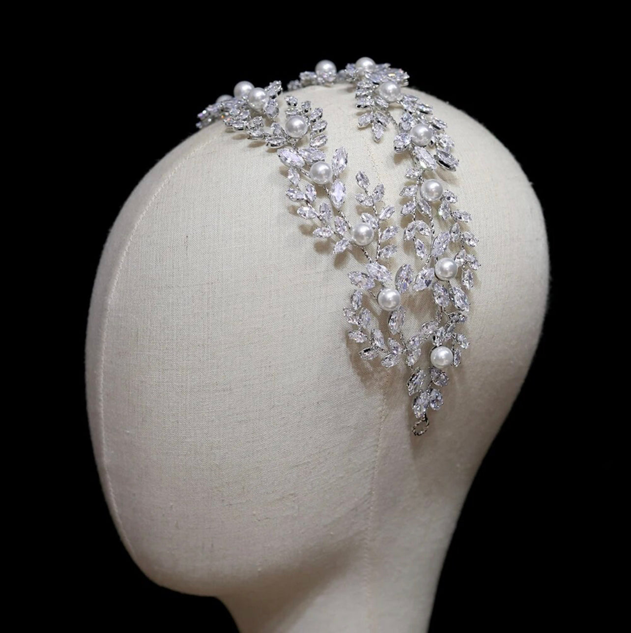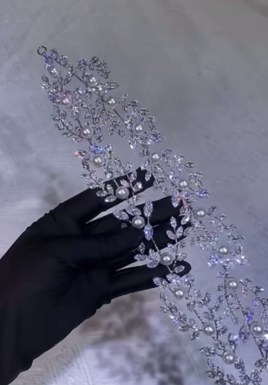 Our Cruz-Pearl headpiece is a beautiful cluster of gems sprinkled with mini crystals and fresh water pearls. This stunning comb is perfect for dressing up any hairstyle.