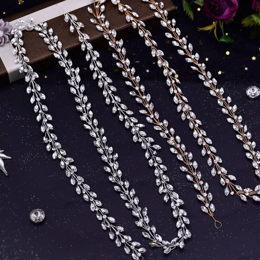 An enchanting halo of sparkling crystals fit for a goddess. This beautiful leaf-like hairpiece is lovingly hand-wired and moldable to suit your hairstyle. Wear it along side our opal headpiece and our Addy earrings. You can style the crystal hairvine alone or wrapped around a bun. Perfect for a luxury wedding fit for a queen.