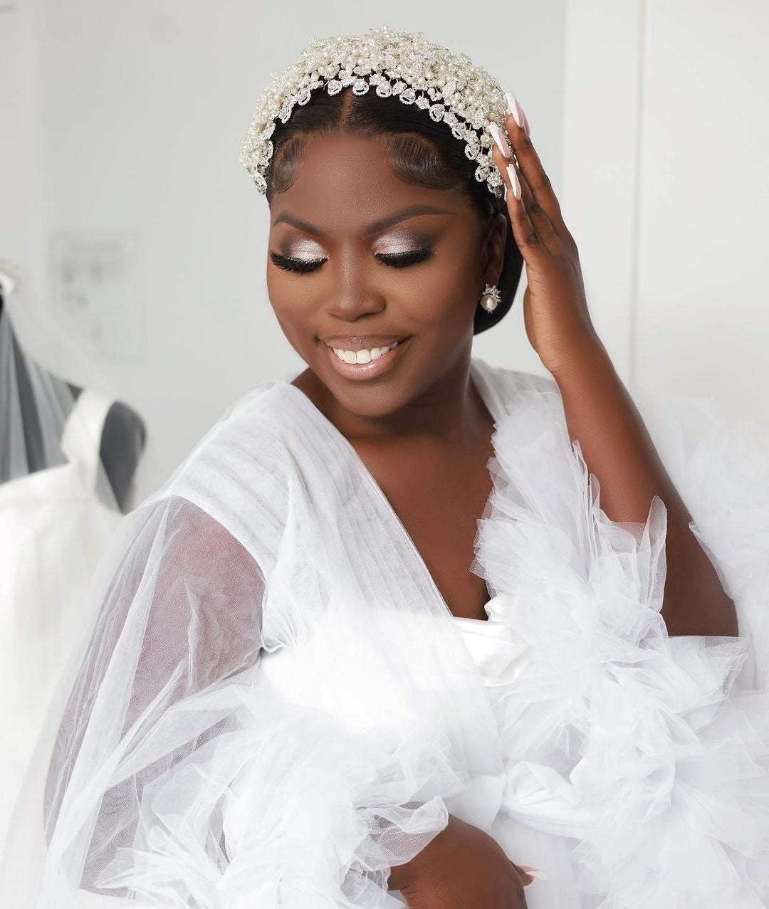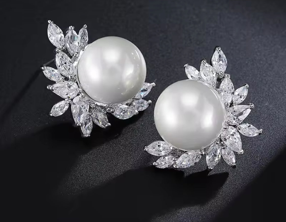 a Gorgeous Cluster of Cubic Zirconia in A Crescent Design; Dainty Earrings Measures 7/8" high x 1/2" w; Posts with Comfort Disk Backs. Dion is a perfect touch to any bridal gown
