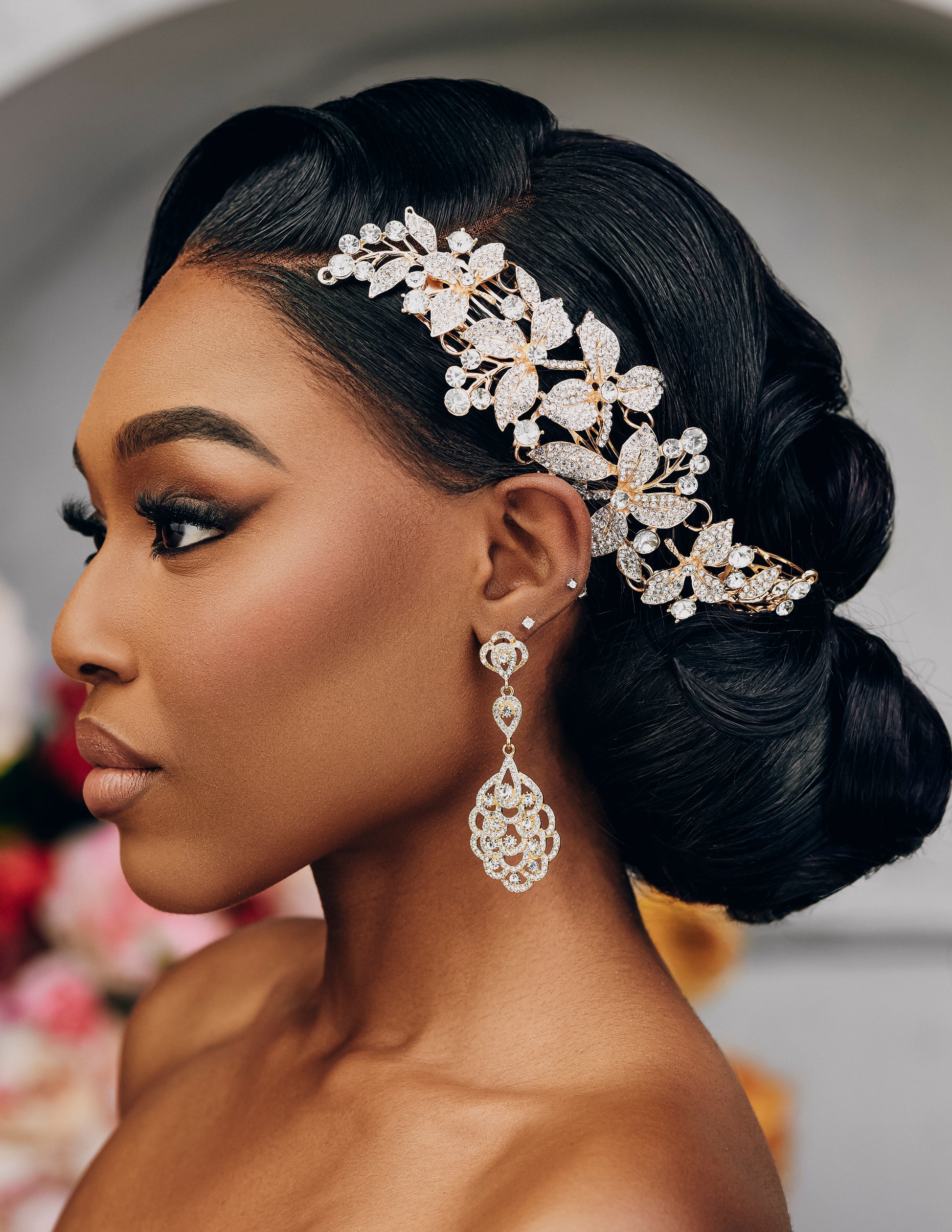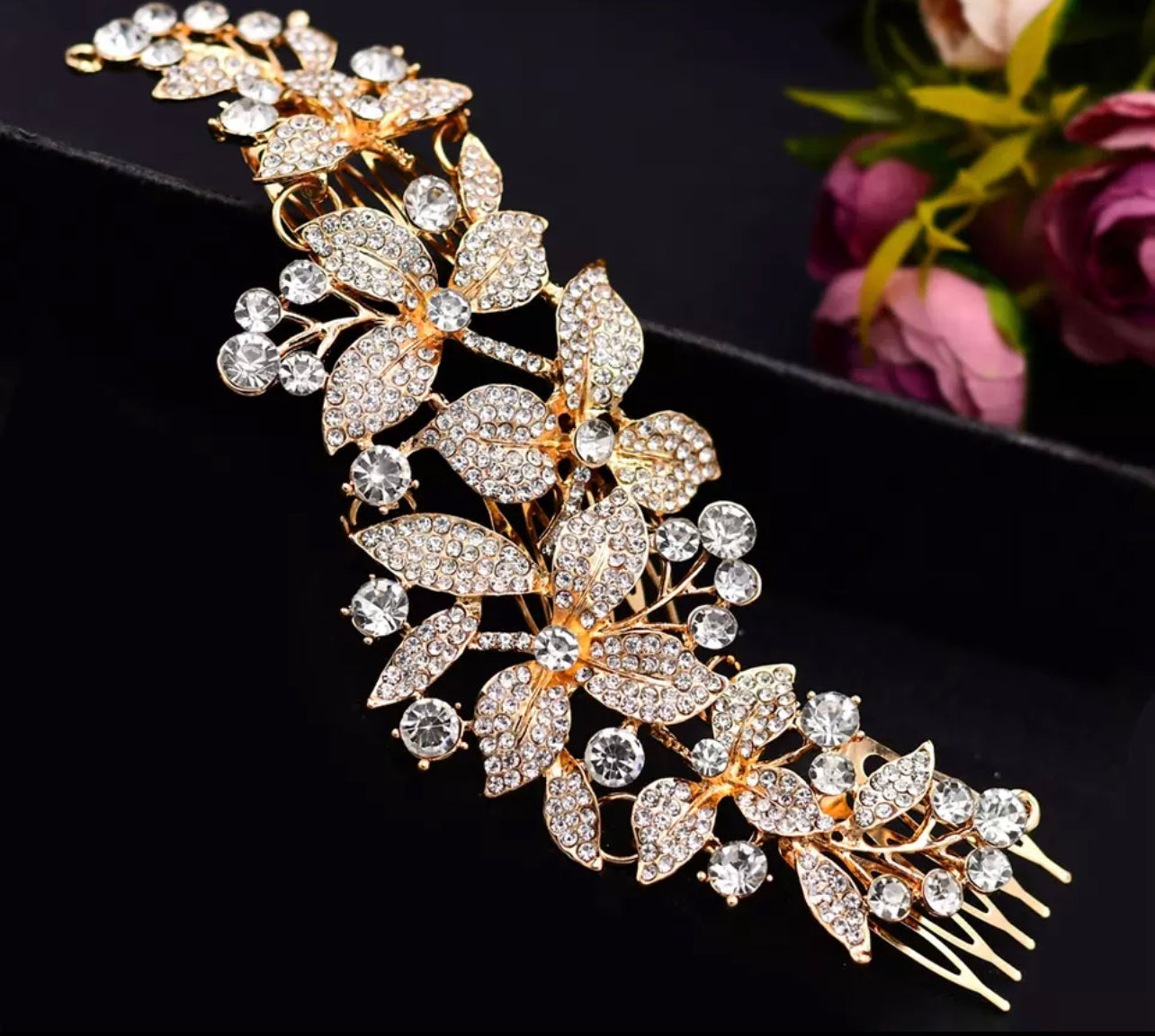 Description: Our silver crystal hair comb is flexible and has several hair comb attached to allow a more secure placement.