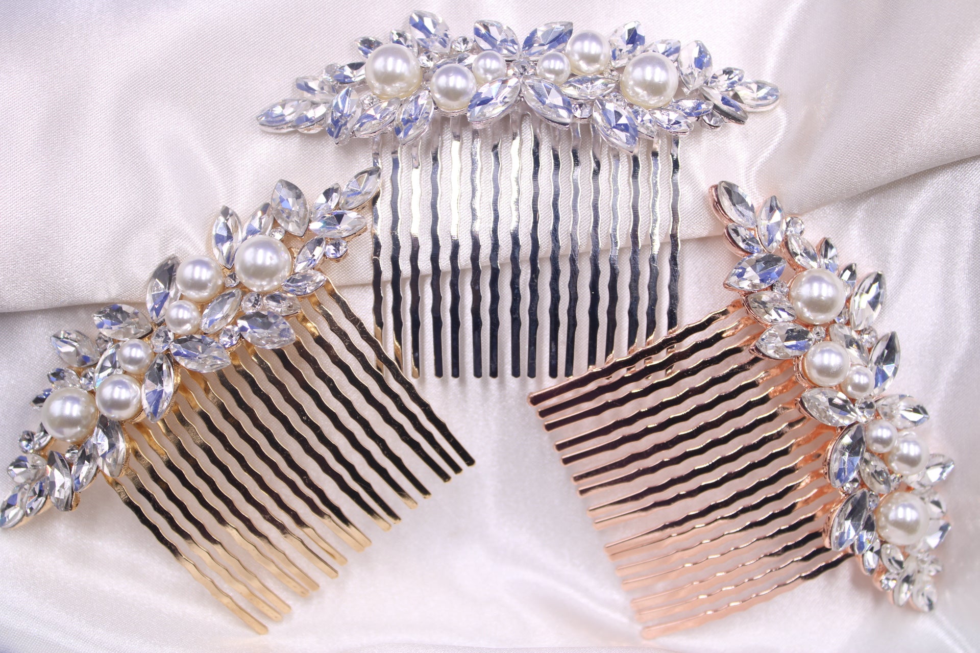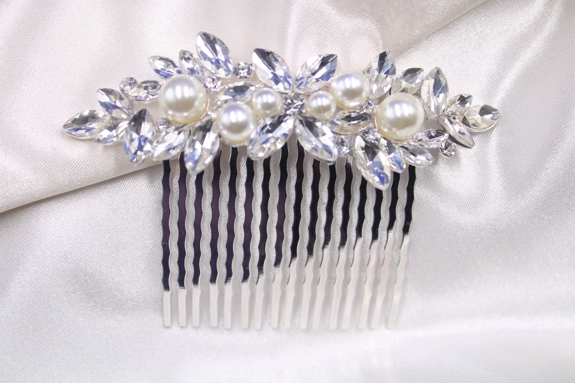 Description: Our gorgeous crystal and pearl hair comb will add a touch of radiance to any hairstyle.