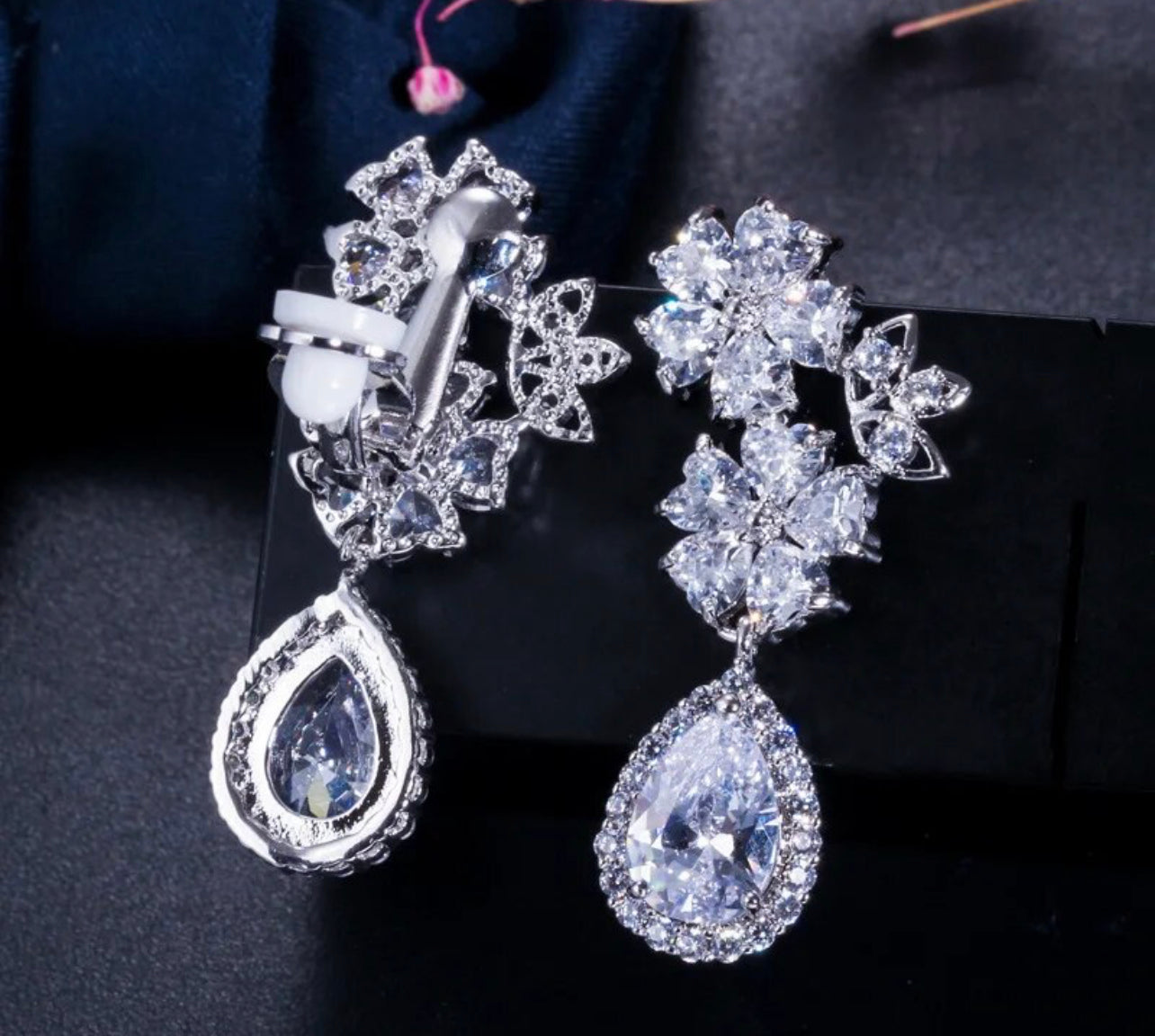 One of our most love drop earrings, now shines so bright. With a gorgeous fan, silhouette and classic elegance, these pair are the perfect piece to get your noticed on your wedding day.
