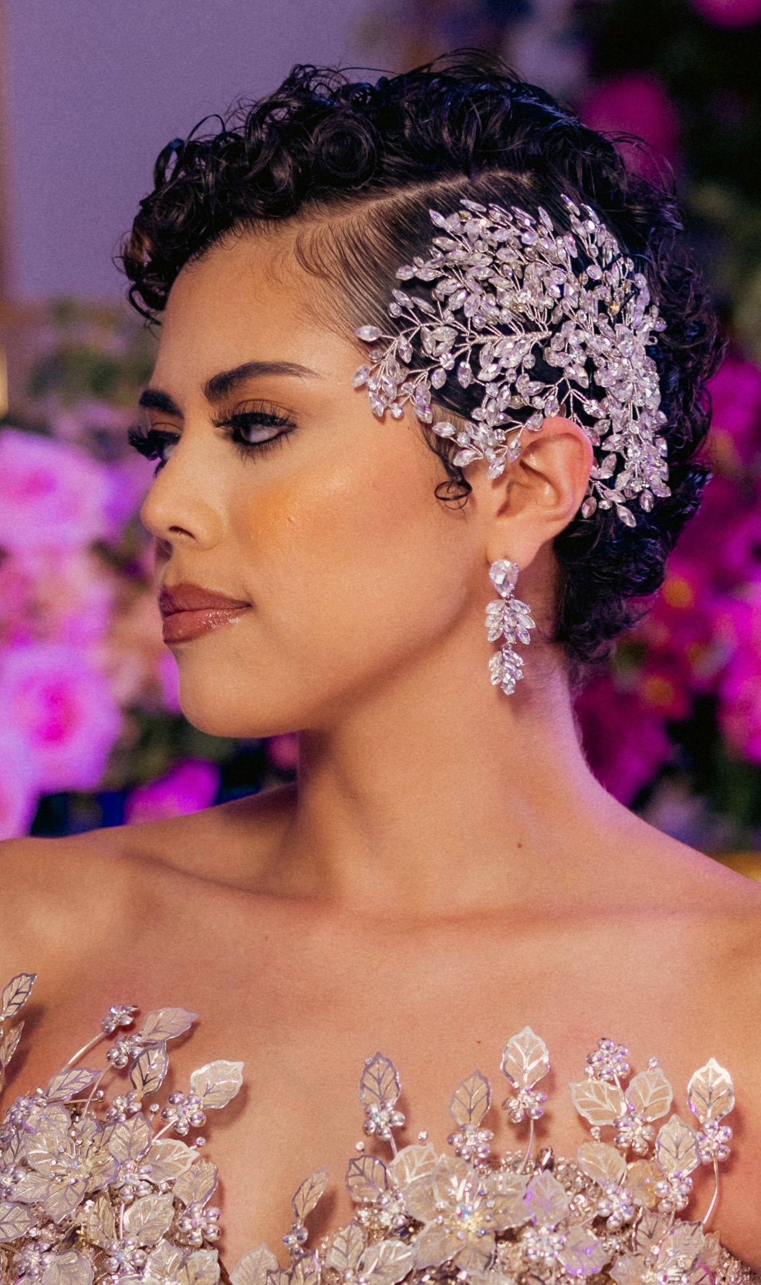 One of our most loved headpiece is now shinier than ever! From its large size to its crystal clear stones you will shine all night long. With a gorgeous fanned silhouette and classic elegance, our gorgeous headpiece is the perfect piece to get you noticed.