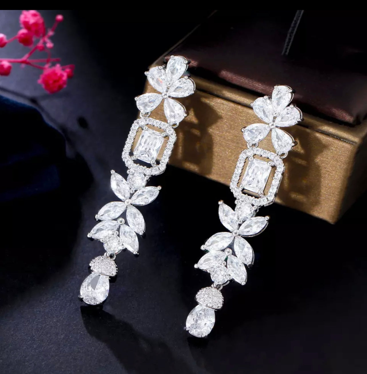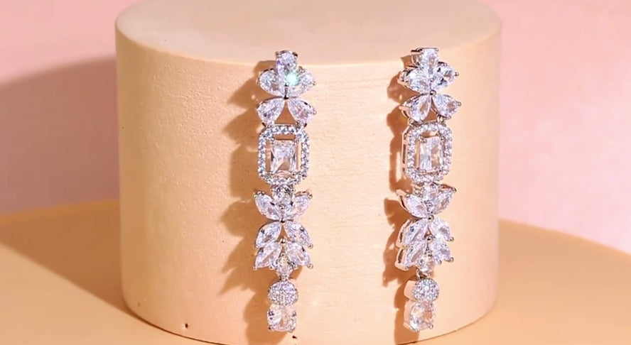 These luxurious bridal earrings are a perfect statement piece for you on your wedding day. Our Monroe earrings are gorgeously made with distinctive shaped stones which gives them their stunning and classic silhouette, these are the perfect piece to get you noticed.
