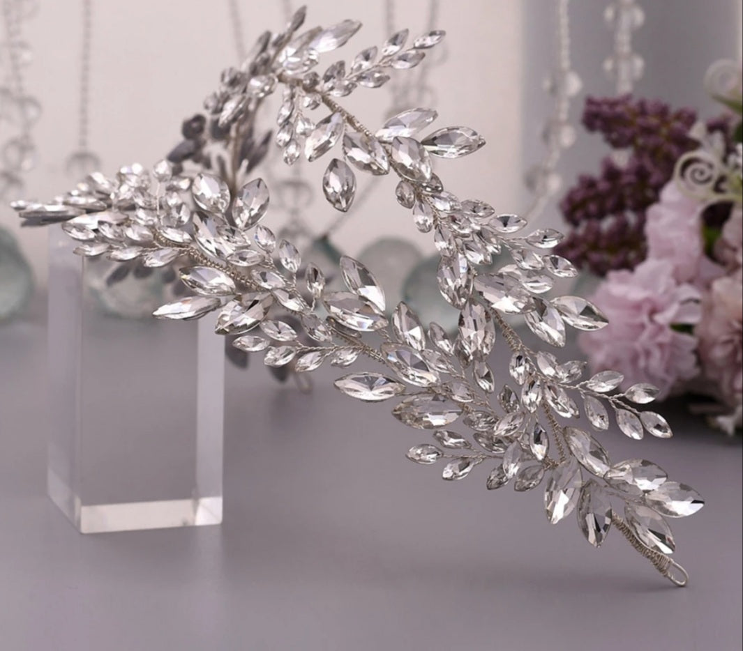 Our stunning crystal goddess headpiece is one of a kind covered in crystal clear stones. The gorgeous headpiece is very bendable and can easily be worn to enhance any hairstyle.