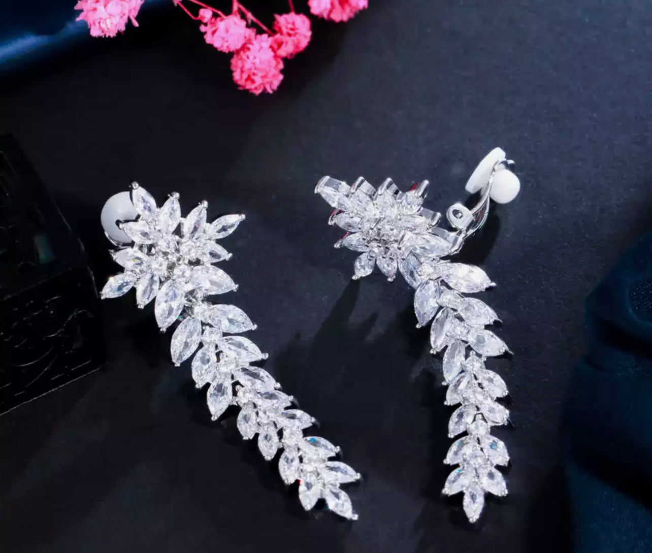 Spoil yourself with a cascade of floral gems, perfect for that special occasion. Style with an up-do to make sure you take center stage in these floral beauties.
