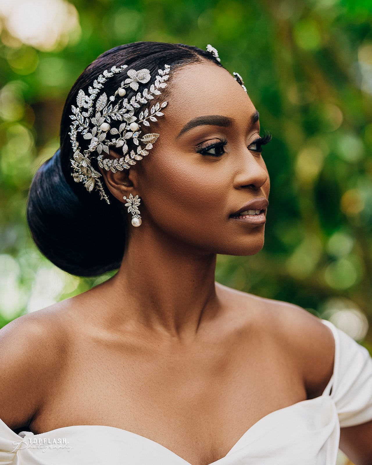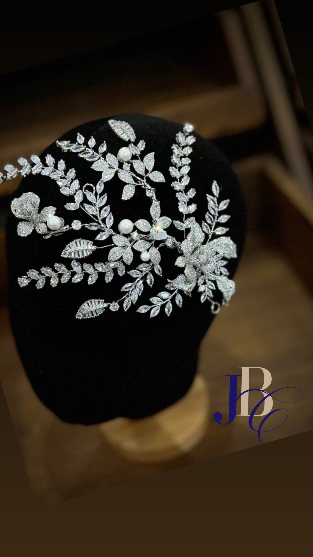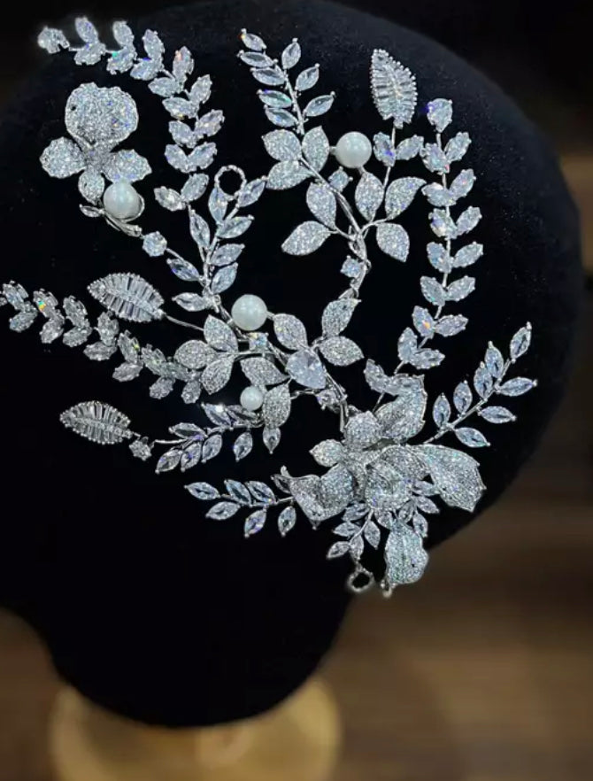 An elegant crystal-adorned headpiece requires minimal bending to take shape to any hairstyle, making it perfect for embellishing a low bun, half-up twist or any style you like. Secure with bobby pins through loops on both ends to keep in place (bobby pins not included).