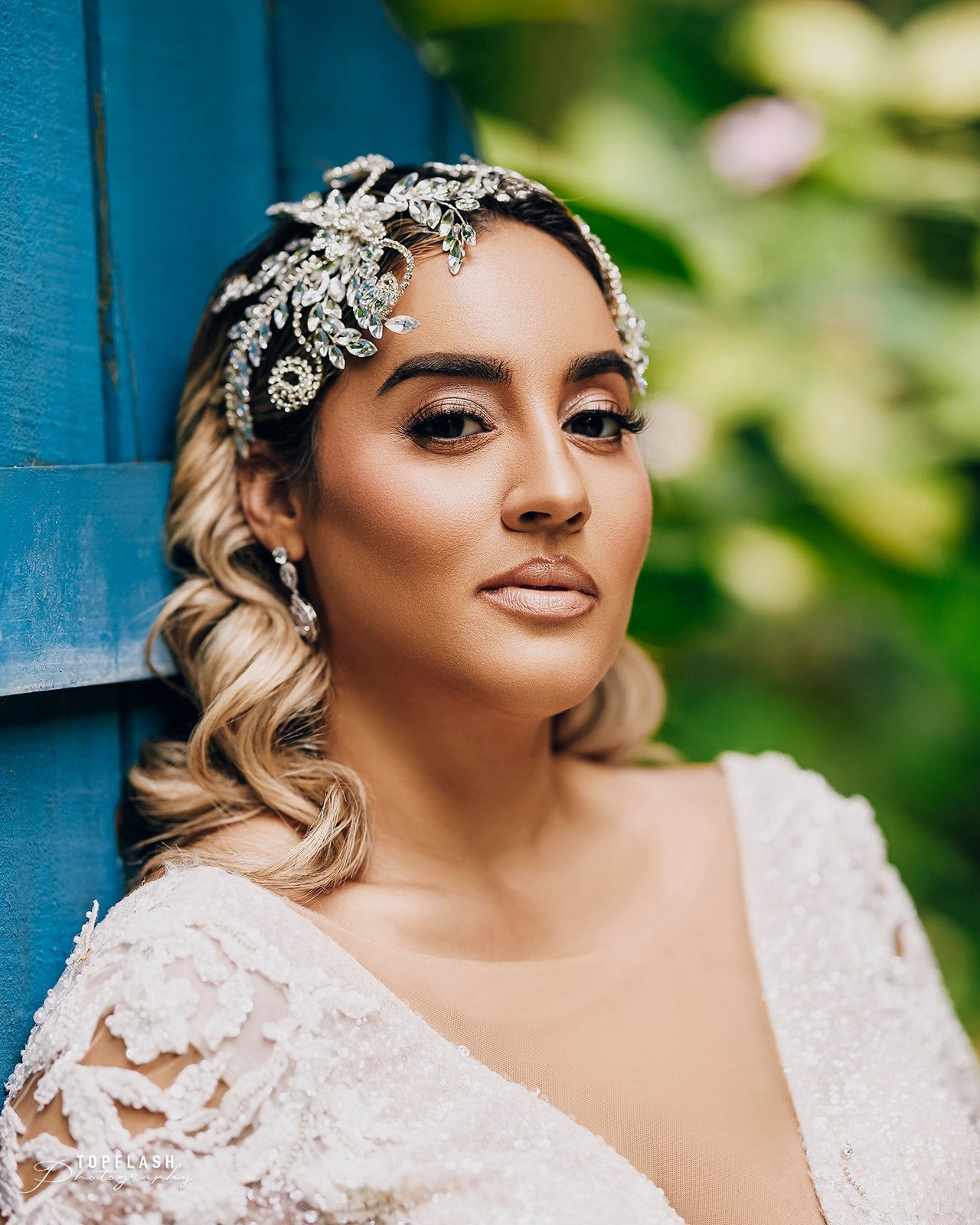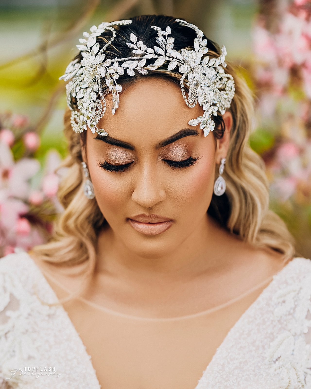 Our Priscilla headpiece is covered in crystal clear stones, allowing flexibility to shape any desired hairstyle. This one of a kind headpiece is what timeless elegance is, captivating hearts with its exquisite craftsmanship and dazzling allure."