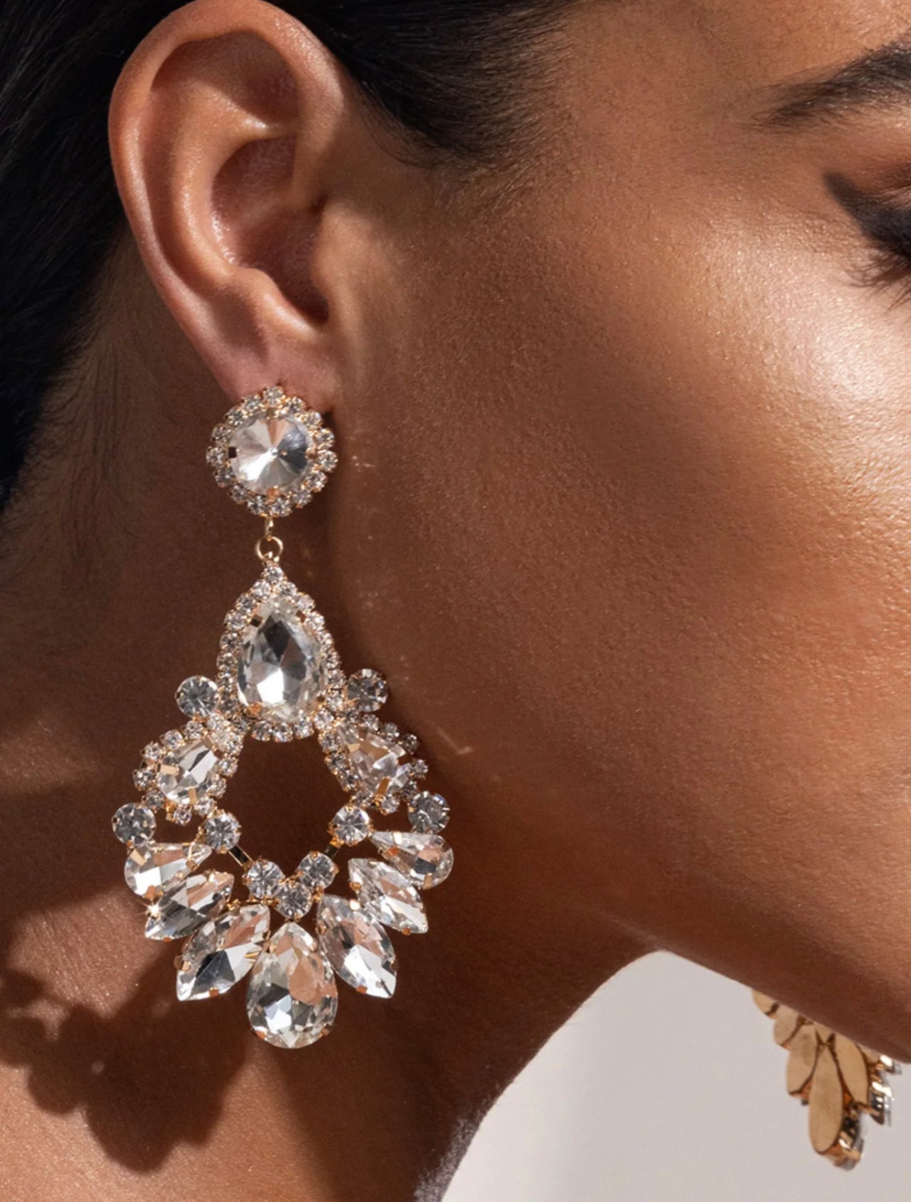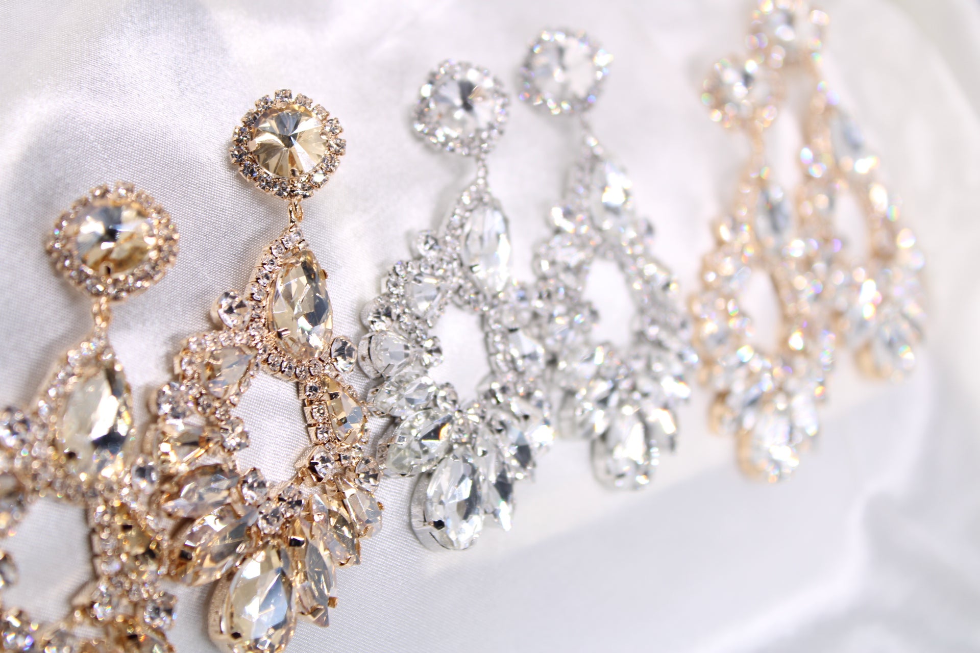 Our Queen earrings are a definite favorite among our brides. This statement drop earring features a dramatic and elegant floral silhouette - perfect for your next special occasion. The luxurious design is both classic and timeless, adding a touch of sophistication and refinement to any look. Wear them with your hair pulled back for added drama on your wedding day.