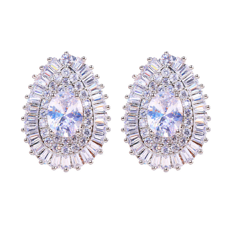 Inspired by glistening droplets of morning dew, these earrings offer a fresh take on our classic clustered styles. Their organic silhouette are adorned with diamond-cut gems and will go perfectly with bridal waves or an up-do.