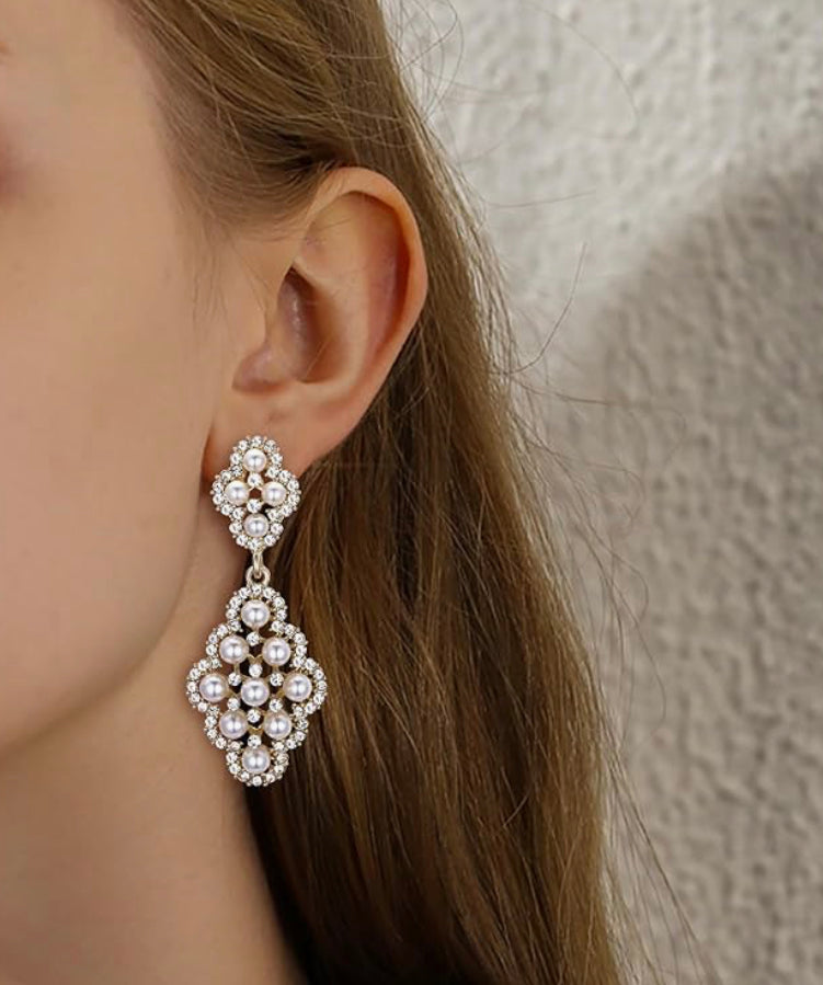 the ultimate mixture of crystal and pearls come together in this beautiful silhouette earring. The perfect dose of glam for that finishing touch you've been searching for.